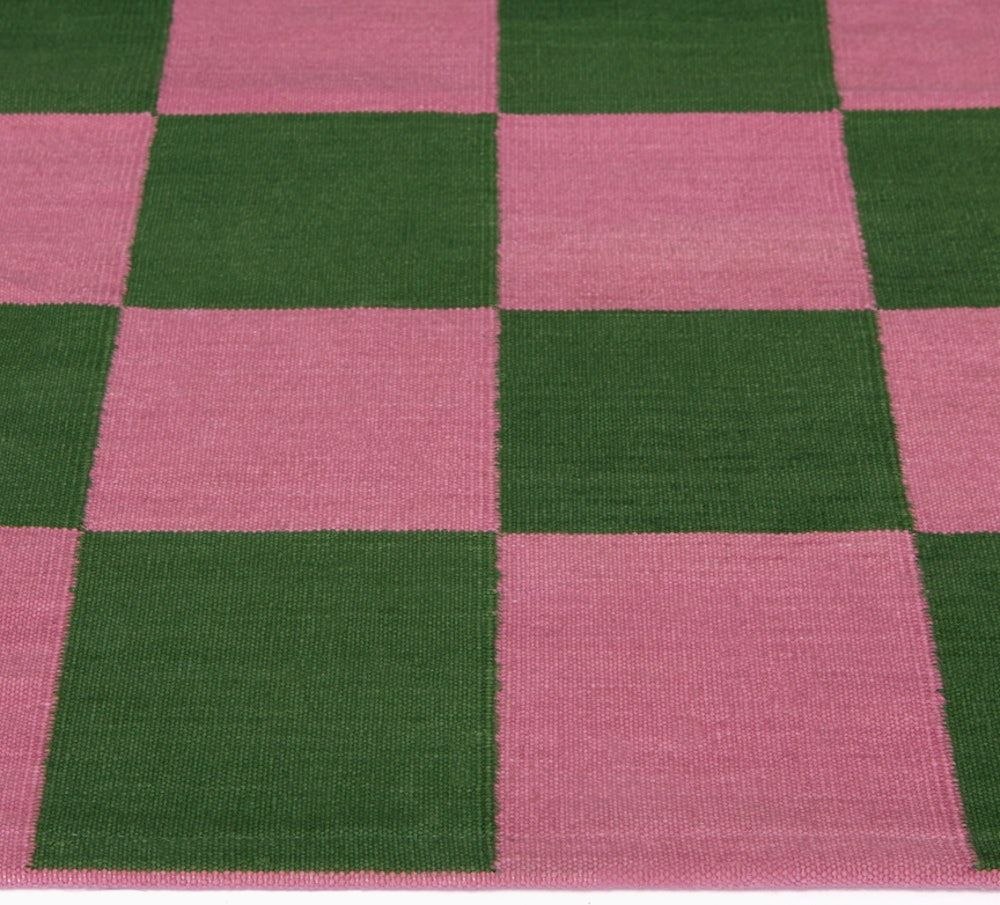 Originally designed by Alexander Girard in 1956 as a table setting, and are part of the recently re-release and transformed as a cotton dhurrie rug. The check pattern engaging meanders between having a graphic and playful spirit.