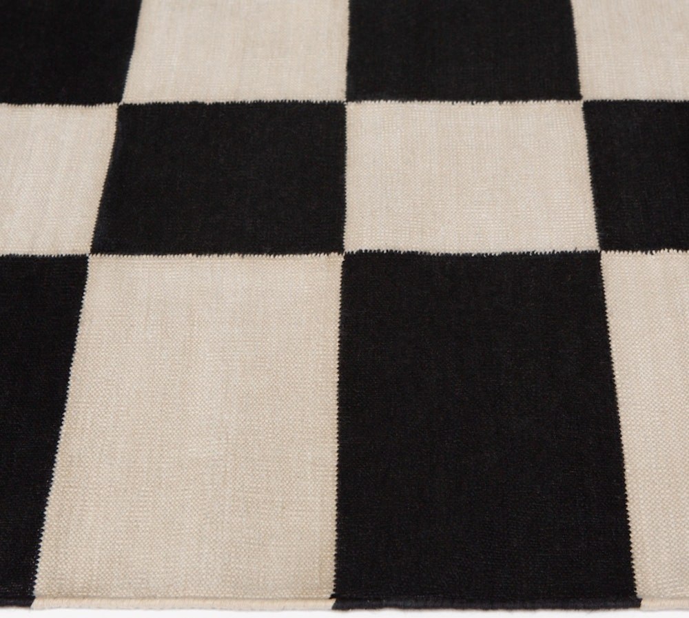 Originally designed by Alexander Girard in 1956 as a table setting, and are part of the recently re-release and transformed as a cotton dhurrie rug. The check pattern engaging meanders between having a graphic and playful spirit.