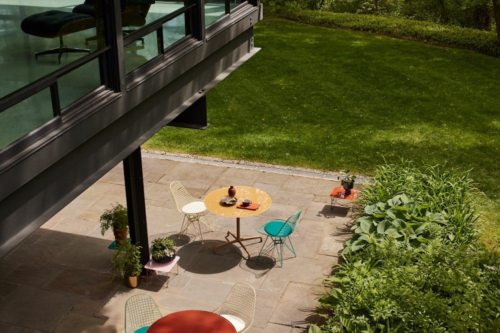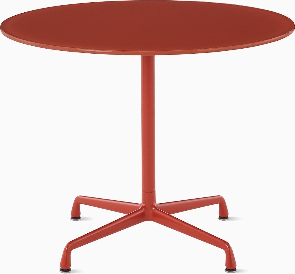 Reimagined in two spirited new colorways and a cast-glass top for the outdoors, Mette and Rolf Hay’s take on the 1954 Eames Round Table is a clever play on color, tactility, and light. The versatile form offers a durable, simple, and sleek design for a variety of settings, from the patio to the sunroom. Enjoy ample leg room with the sturdy yet streamlined base, while leveling glides correct for uneven floor surfaces.