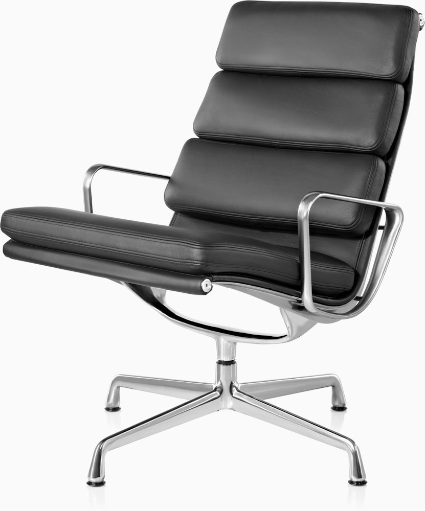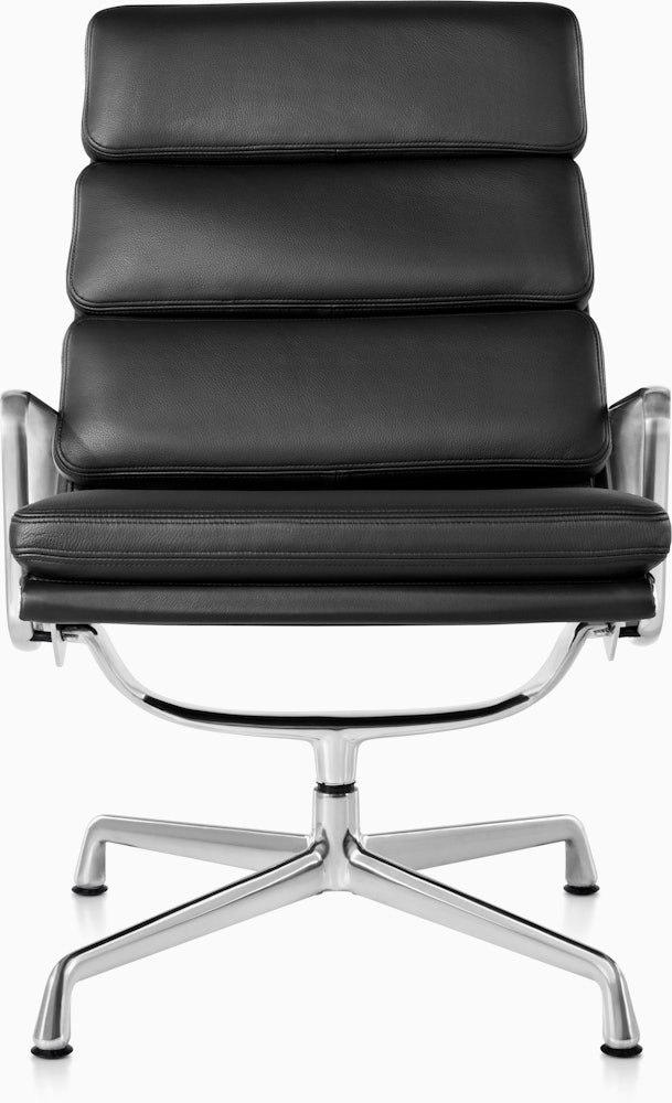 Designed as part of the iconic Aluminum Group, the Eames Soft Pad Lounge Chair has a high back, a relaxed pitch, and comes with its own pillowy headrest.