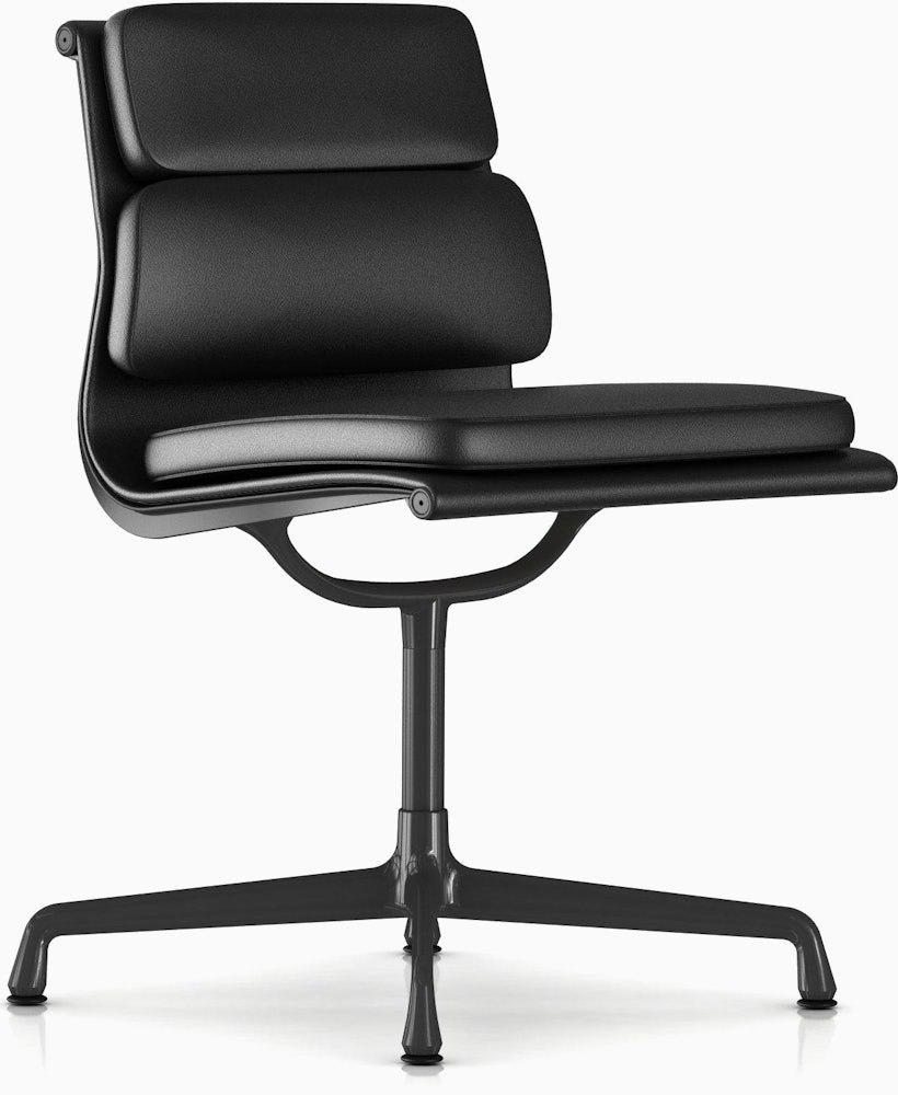 Designed as part of the iconic Aluminum Group, this low-back, armless side chair has the same sophisticated, refined aesthetic with extra padding. This authentic Eames Soft Pad Chair is made by Herman Miller.