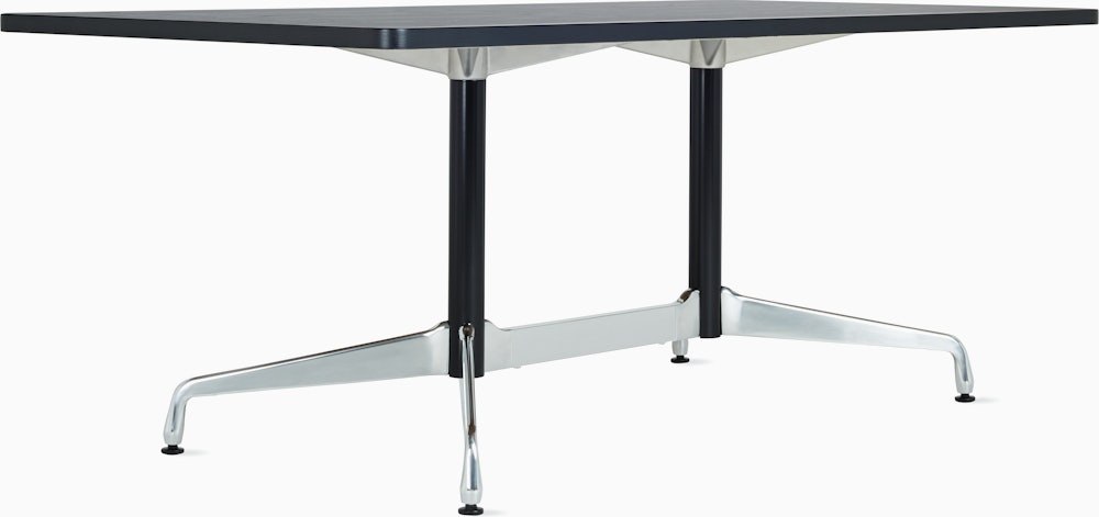 Drawing on a theme of versatility, the Eames Table (1964) offers a durable, simple, and sleek design for a variety of settings. A sturdy streamlined base provides plenty of legroom, while leveling glides correct for uneven floor surfaces. An elegant take on the modern rectangular dining table, the Eames segmented base table ships assembled. This is an authentic Eames Table by Herman Miller.