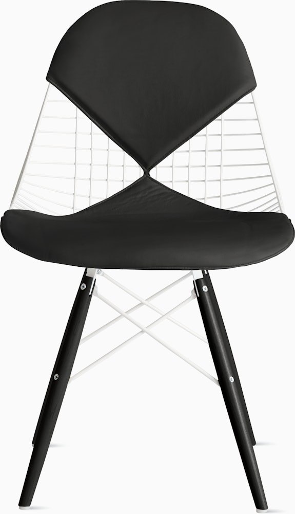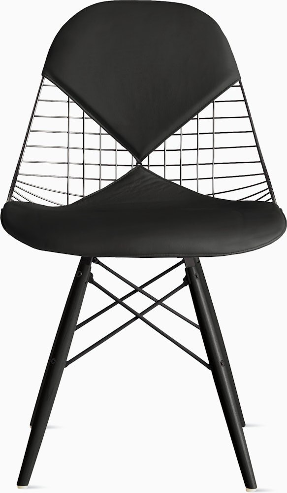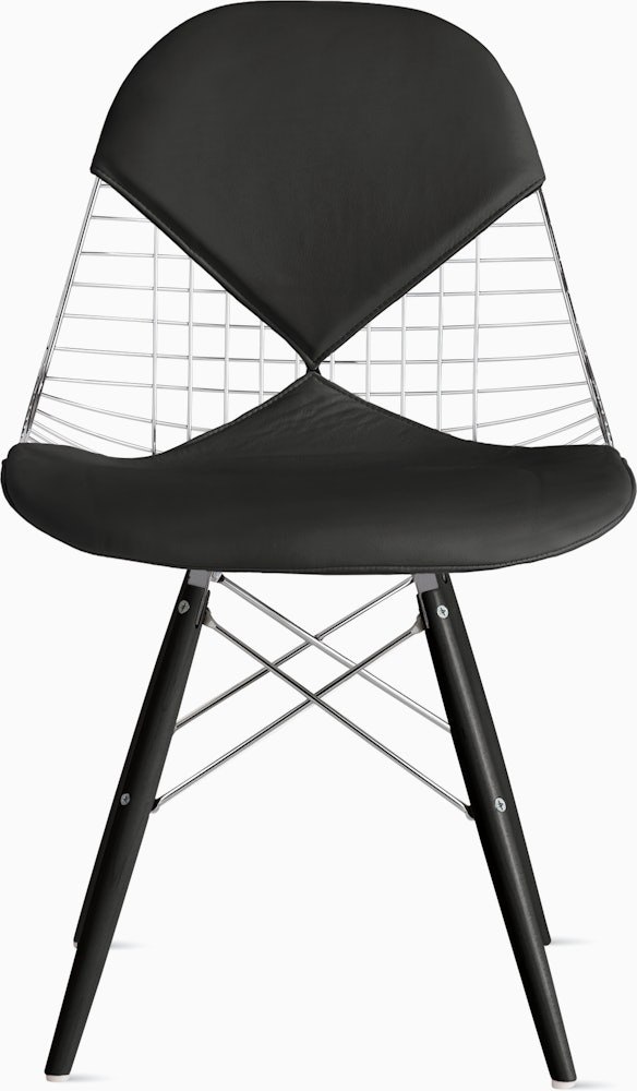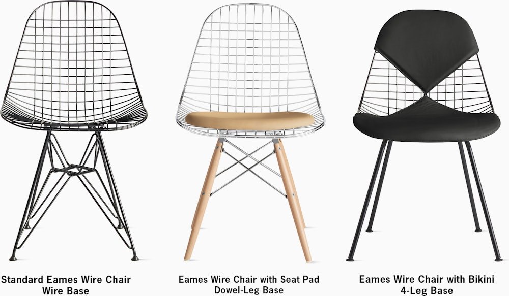 Sometimes referred to as the “Eames office wire chair” or “wire back office chair,” the Eames Wire Chair (1951) can now be found in homes (and museums) around the world. Streamlined and lightweight, the polished steel wire seat can be combined with your choice of three base styles and an optional one- or two-piece leather seat pad.