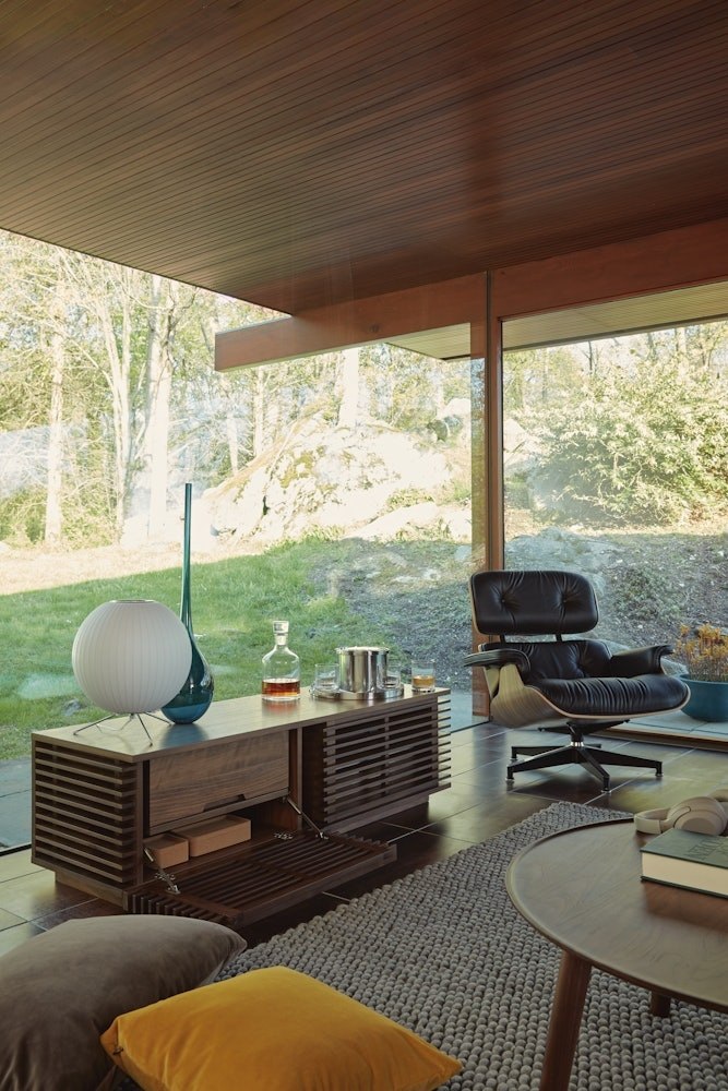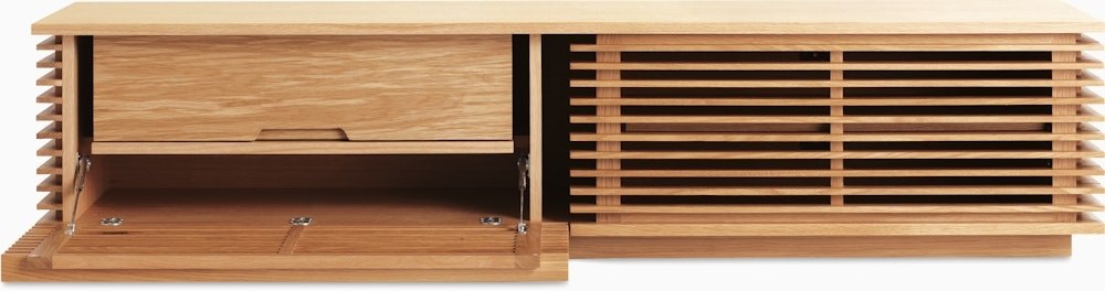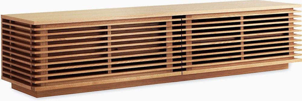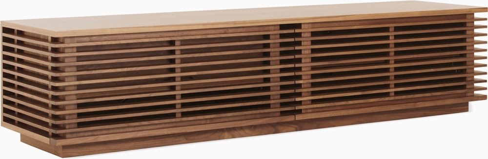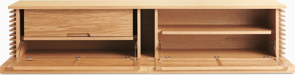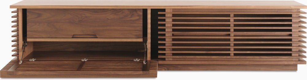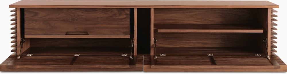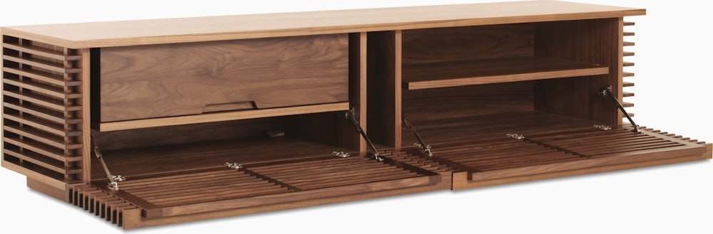 • Sleek design; louvered doors to allow remotes to control devices inside.