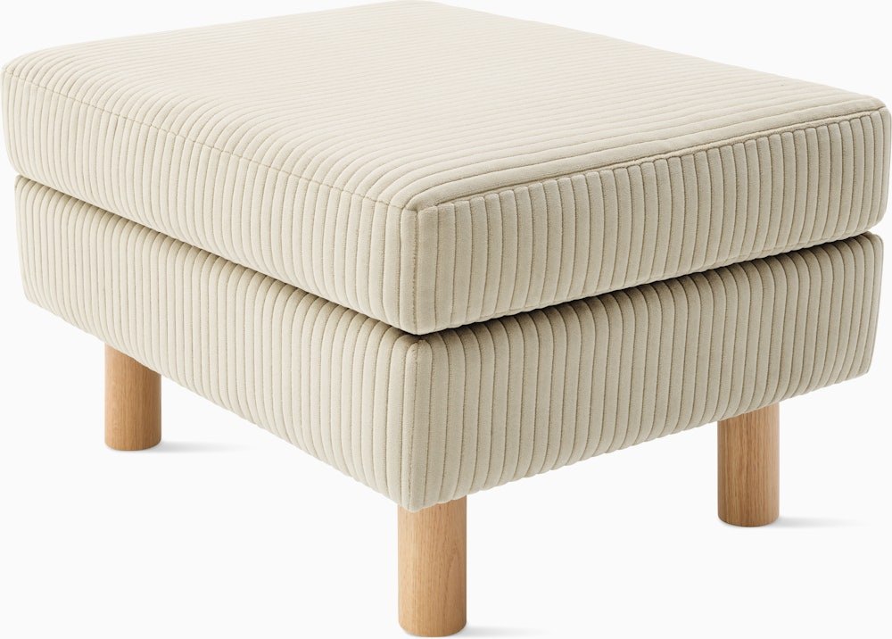 Architect Neil Logan designed the Lispenard Collection for an art collector who wanted a contemporary sofa soft enough to sink into. The result proved so versatile that Herman Miller put it into production. Topped with feather-filled cushions that provide just the right amount of give, the Lispenard Ottoman (2018) has round, hardwood legs available in an oak or walnut finish. The upholstered sofa ottoman is available in a choice of two heights, and comes in dozens of fabric and leather options.