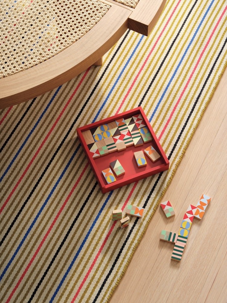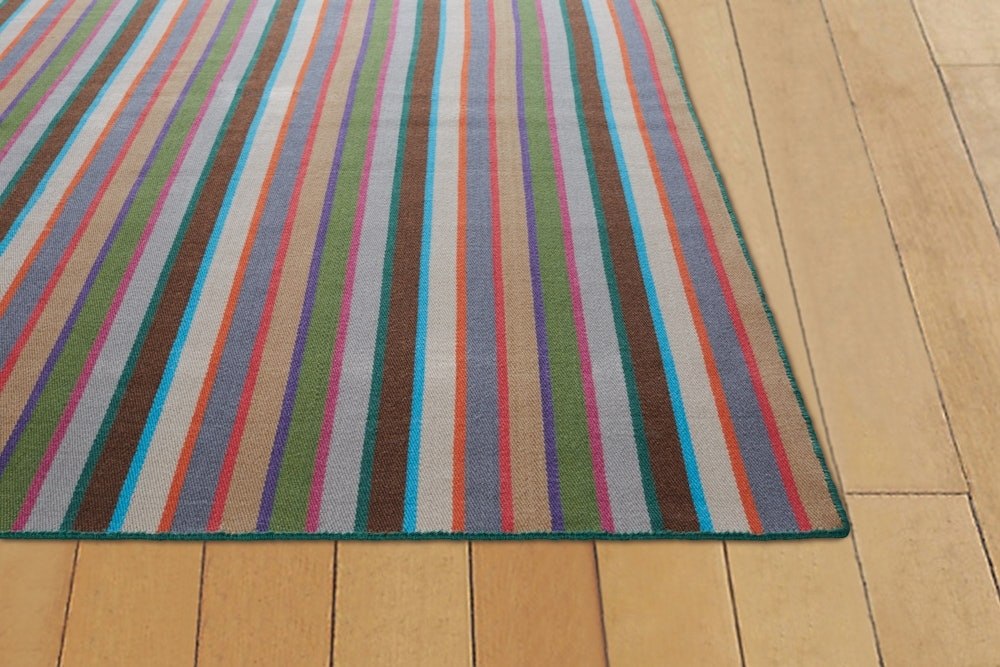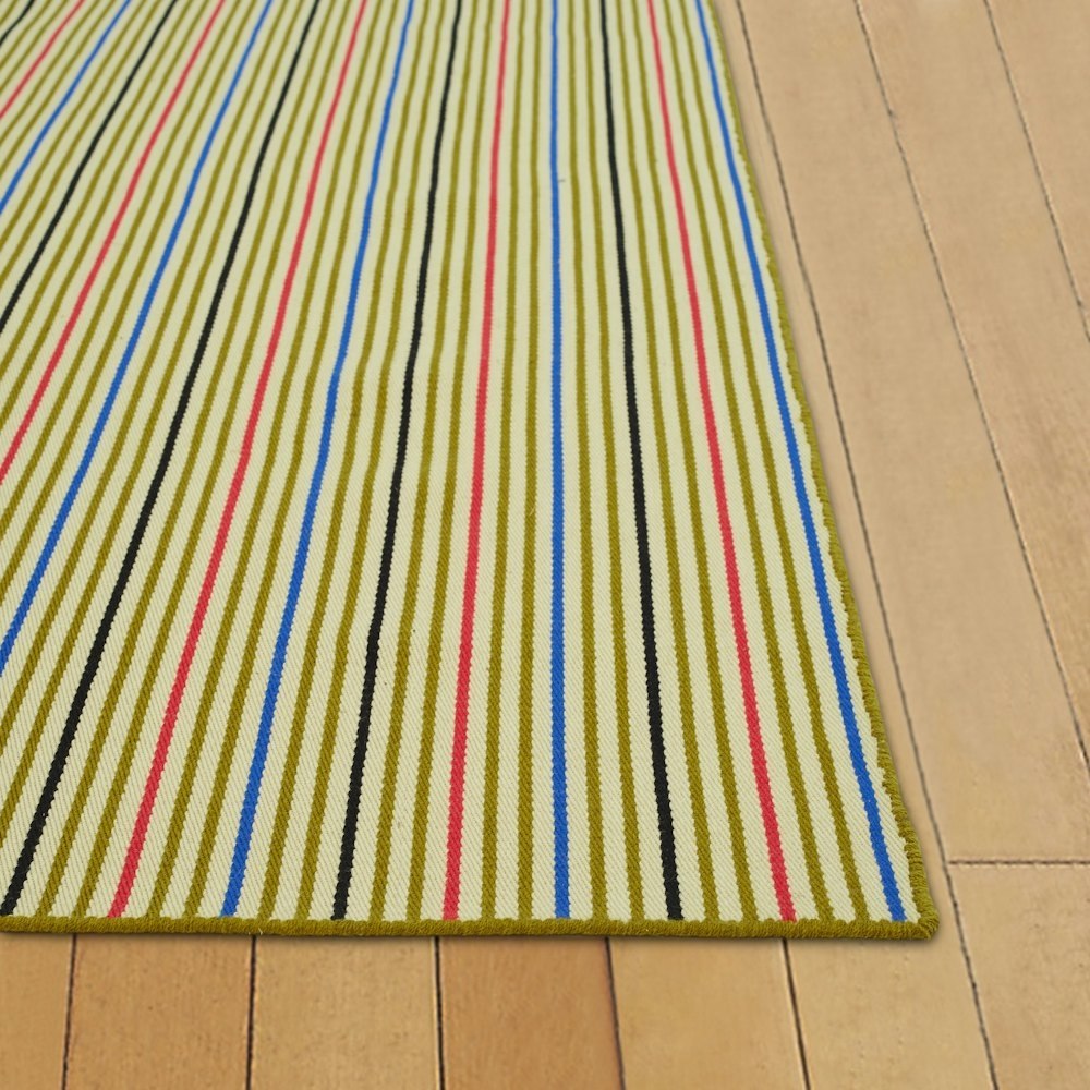 Featuring the classic stripes of Alexander Girard, the Millerstripe Rug is a beautifully crafted, handwoven floor covering. The handwoven wool-blend twill depicts Girard’s original polychromatic layouts at exactly double their original scale. The result is a simple, modern aesthetic that blends easily into any room. Made in India.
