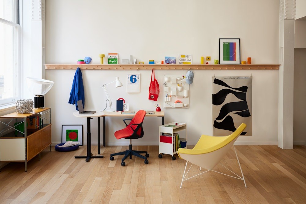 With its triangular cushion and rounded frame, the George Nelson Coconut Chair (1956) redefined what comfortable and attractive lounge seating could be. The secret is that the third corner — the one that forms the backrest — is slightly longer than those on the side, giving users extra support and wiggle room. While our version of the Coconut Lounge Chair remains true to the original design, we’re using a more sustainable polymer for the shell and have expanded the upholstery options.