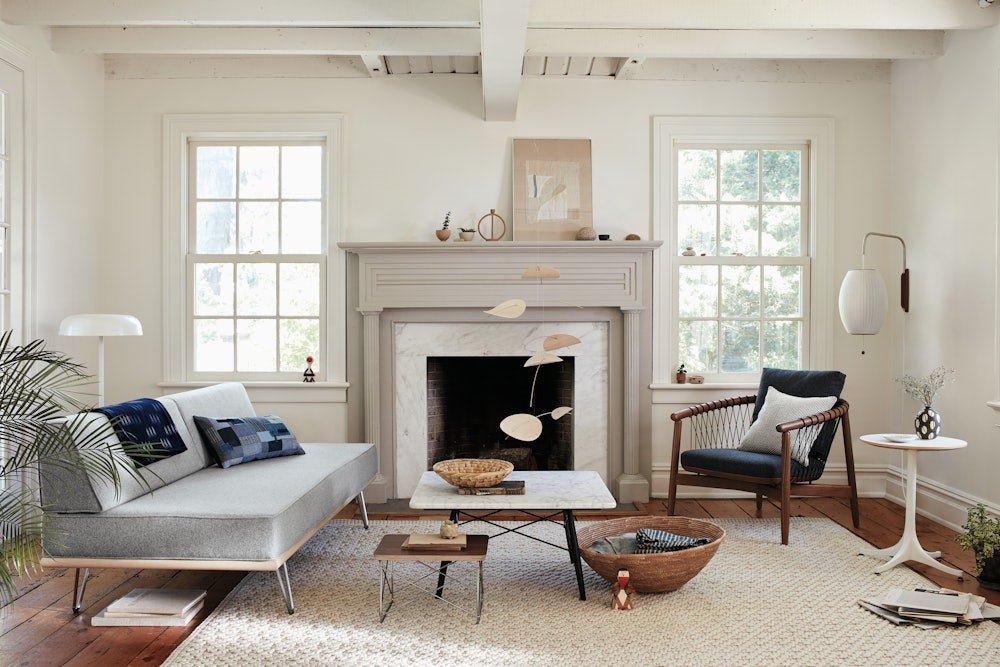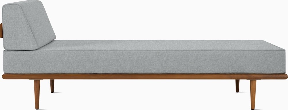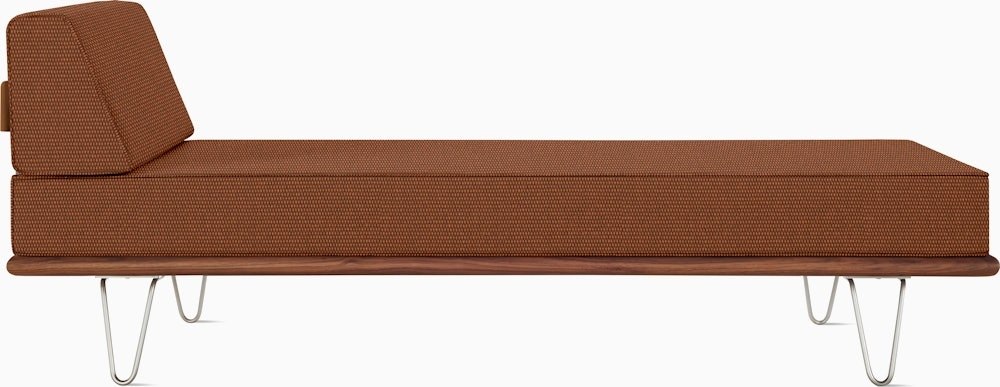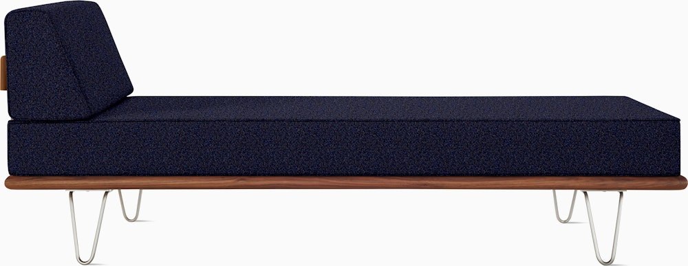 The art of reduction was one of the many areas in which Nelson excelled. The Nelson Daybed (1949) is no exception. Crafted from sustainably-sourced materials, this daybed with bolster cushions features a solid walnut or white-ash frame; it comes with matching tapered or stainless-steel hairpin legs. Three cushion figurations — standard, back, and side — are available, as are a range of upholsteries. This is the authentic Nelson Daybed with Bolsters from Herman Miller.