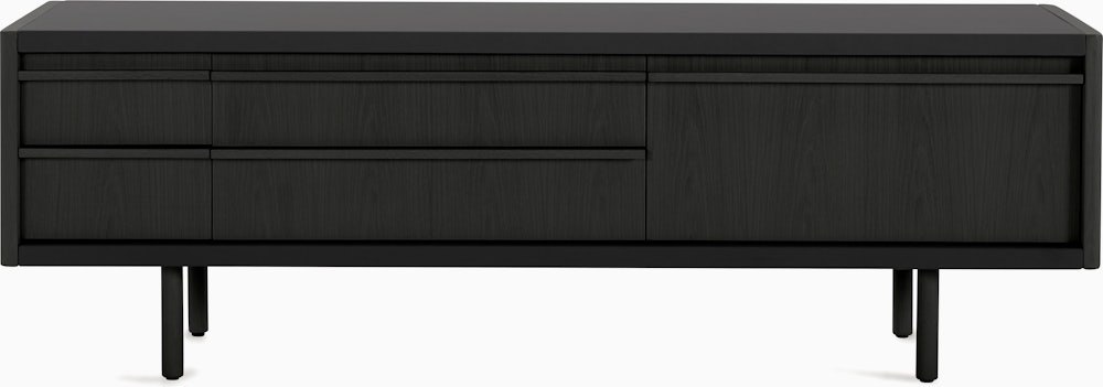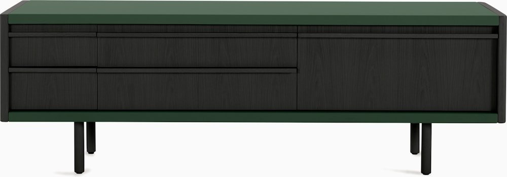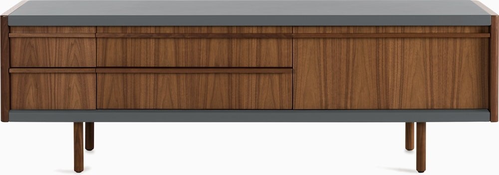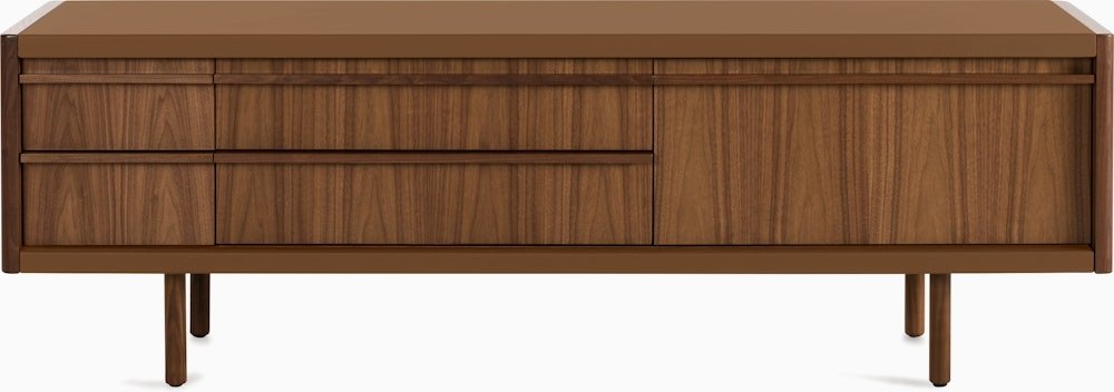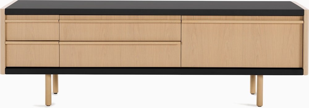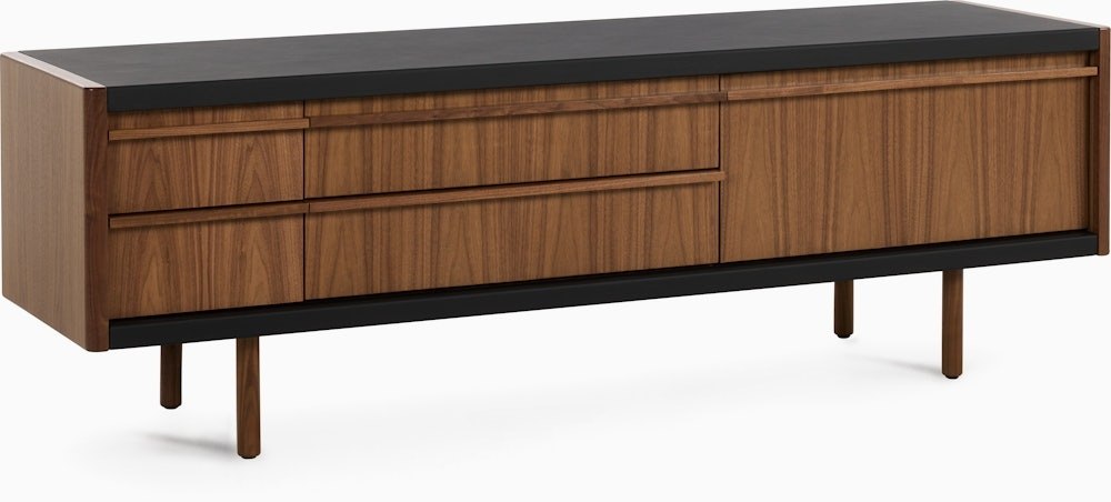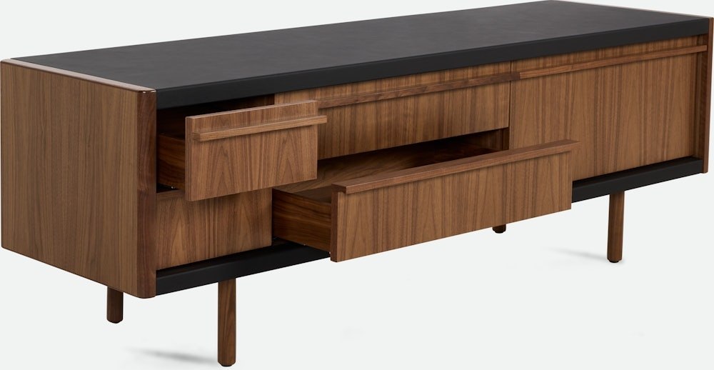 With an ethos they call Craftsman Modern, Connecticut-based BassamFellows designs furniture defined by honest materials, clean lines, and meticulous construction – all imbued with tactile richness. New Canaan Collection (2025) embodies this approach. Rooted in modernist principles, the Media Console combines precision engineering and old-world craftsmanship with its sturdy wood frame wrapped in a range of premium leathers. Drop-down cabinet doors serve as a convenient surface while providing easy access to remotes, devices, or other items stored inside. Crafted in the USA using globally sourced materials.