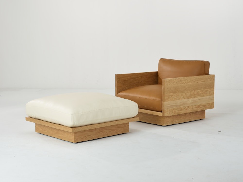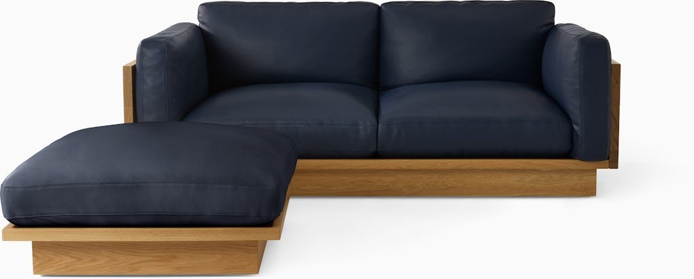British architect John Pawson has built a career on distillation – stripping away the superfluous until only the essence remains. His sustainably minded Pawson Drift Sofa Group (2025) for Herman Miller embodies this philosophy. The ottoman’s solid hardwood frame appears to float, while precise square-edge joinery delivers structural integrity and visual refinement from every angle. Generous natural latex cushions, wrapped in responsibly sourced down, rest on a hidden leather strap suspension. Composed of over 80% plant-derived components, this environmentally responsible design proves comfort and conscience are beautifully compatible. Made in the USA.