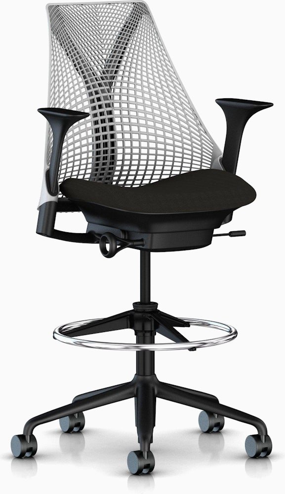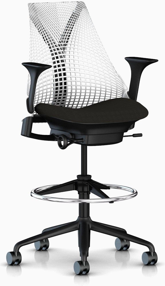 Inspired by the Golden Gate Bridge, the Sayl office stool makes a big impact with a small footprint. Its unique unframed back features elastomer strands that are stretched to provide the greatest tension where support is needed and less in areas that benefit from a greater range of motion. Speaking of motion, the work stool’s Harmonic Tilt technology offers sitters a sense of balanced movement and support as they move throughout the workday.