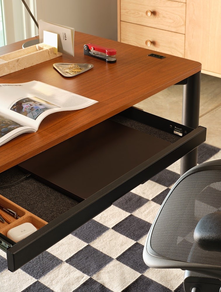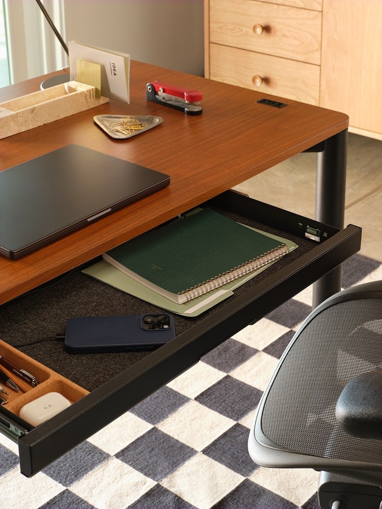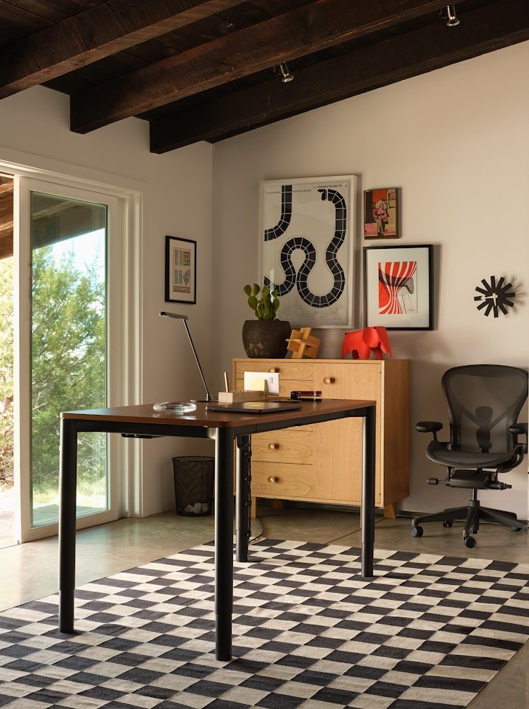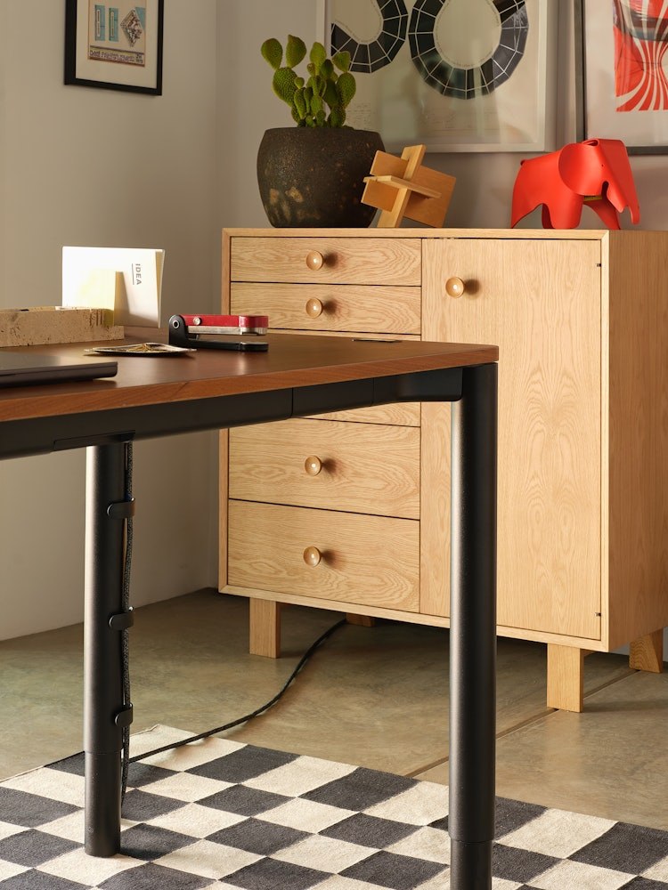Spout Sit-to-Stand Table pairs the elegance of a classic desk with the versatility and function of a modern height-adjustable surface. Its four-leg design not only offers a traditional look but also increases Spout’s lift capacity, while discreet cable management keeps your home office tidy and organized. Move freely with a sophisticated table made for a happier, healthier workday.