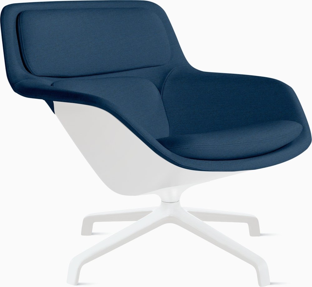 Thanks to its three-layer construction, the Striad Lounge Chair (2016) achieves that perfect balance of structure and comfort. It comprises a rigid outer shell merged with a natural-fiber inner shell; both are fully upholstered then topped with deep-set, dual-density cushions that add supple support. Available in a range of finishes, fabrics, and leathers appropriate for a multitude of spaces, the Striad High Back Lounge Chair also comes in a choice of bases.