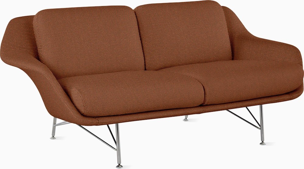 Thanks to its three-layer construction, the Striad Sofa (2016) achieves that perfect balance of structure and comfort. It comprises a rigid outer shell encasing an inner shell made from natural fiber composite materials. Topping both are deep-set, dual-density cushions that add supple support. Upholstered in a choice of fabrics or leathers, the Striad Couch features a steel-wire base available in a choice of finishes. This modern 2-seat sofa also comes in a 3-seat option.