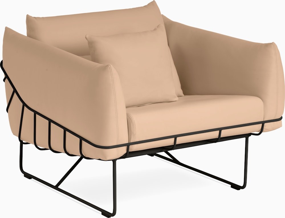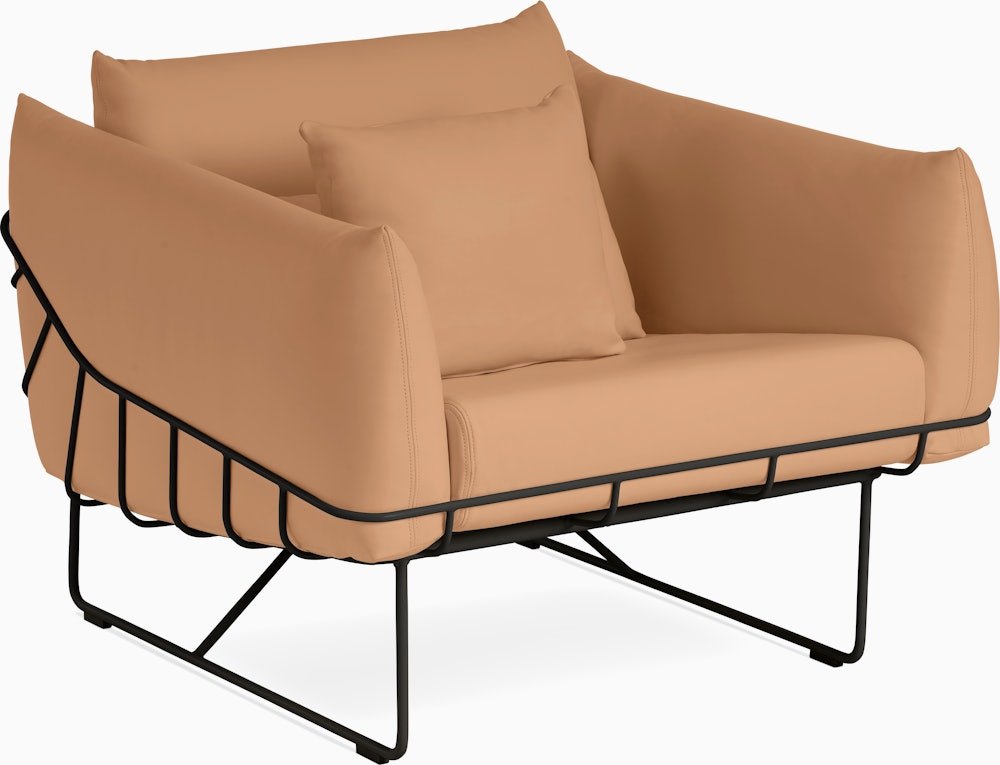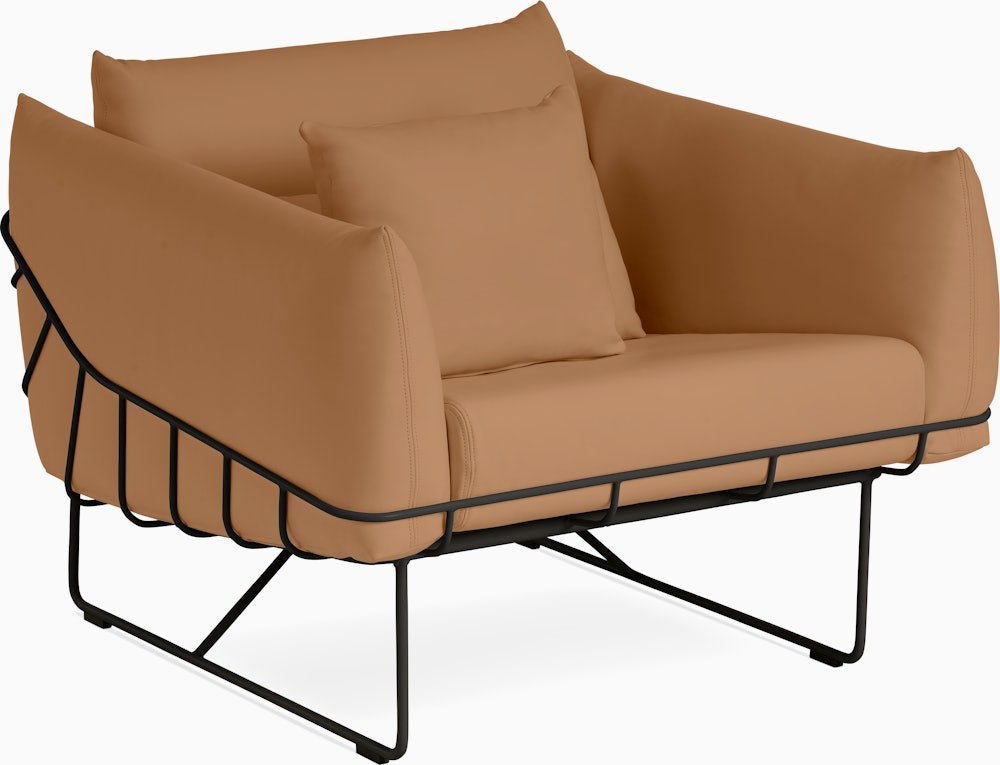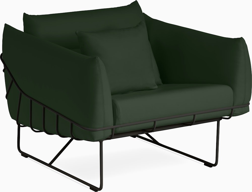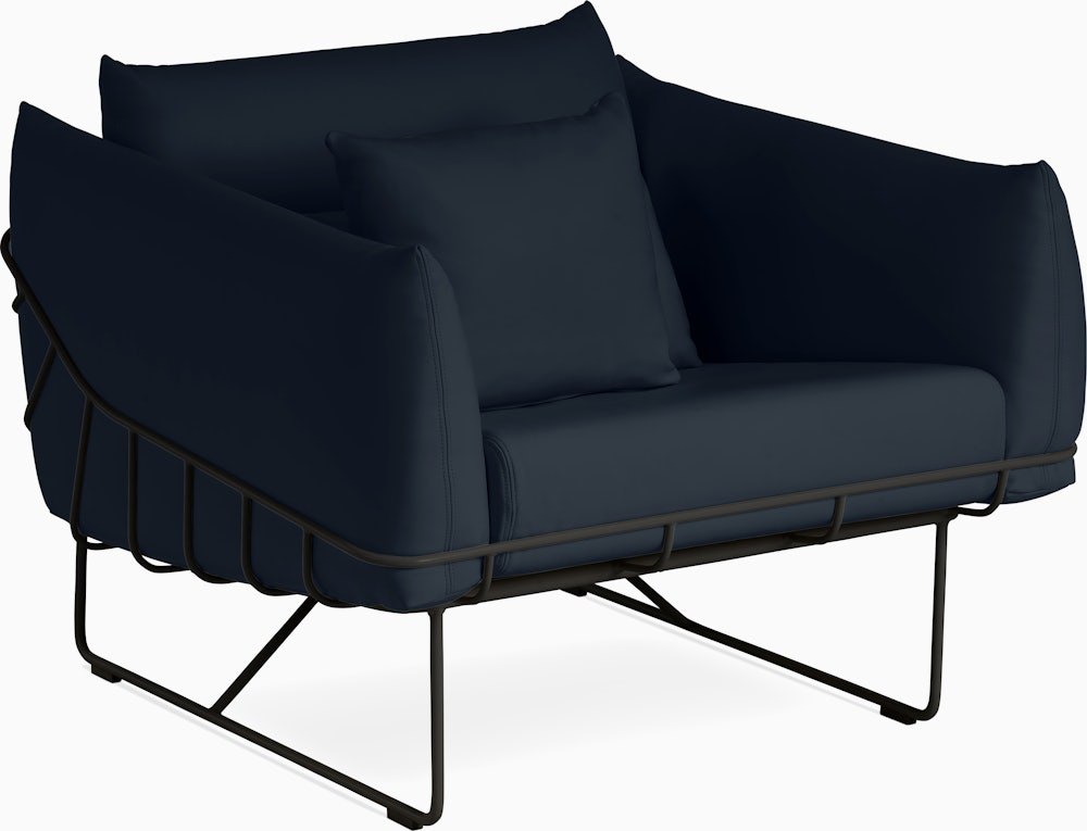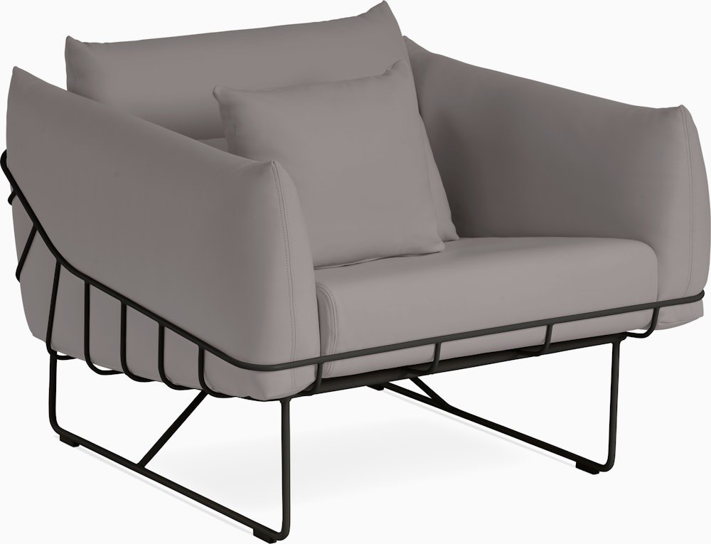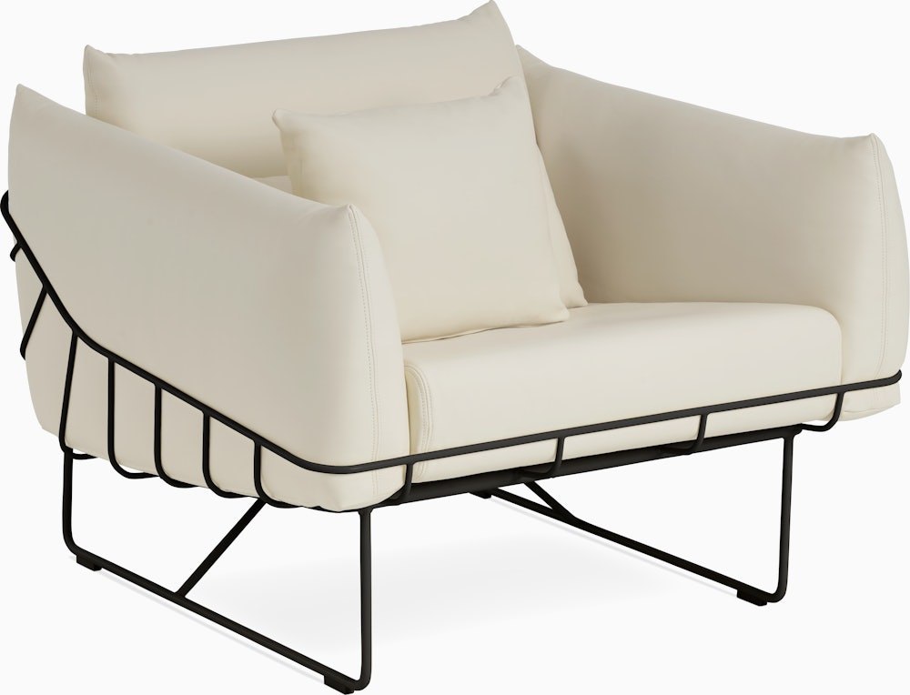 Casual yet sophisticated, Wireframe Sofa Group by Sam Hecht and Kim Colin explores an enduring theme for their design practice: contrasting tension. With the Wireframe Chair, lightweight cushions are held within a steel wire frame, pairing softness and volume with strength and durability. This modern armchair makes a striking solo statement and feels right at home with other pieces from the Wireframe Sofa Group.